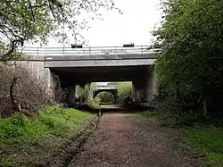 The Birmingham Canal Navigations' Wyrley and Essington Canal passes through Brownhills and meets the Daw End Branch Canal at Catshill Junction.[60] The Lichfield and Hatherton Canals Restoration Trust has been involved in restoring the Lichfield Canal since its formation in 1988 and, in 2003, created an aqueduct over the M6 Toll road near Brownhills.[61]