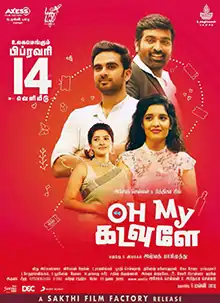Oh My Kadavule (transl. Oh My God) is a 2020 Indian Tamil-language romantic fantasy film, written and directed by Ashwath Marimuthu on his directorial debut. The film stars Ashok Selvan, Ritika Singh and Vani Bhojan while Sha Ra and M. S. Bhaskar play supporting roles. Vijay Sethupathi and Ramesh Thilak make extended cameo appearances.[2] The film had its theatrical release on Valentine's Day, 2020. Oh My Kadavule was selected for official screening at International Indian Film Festival in Toronto, held in August 2020.[3] It was remade in Kannada as Lucky Man (2022) and in Telugu as Ori Devuda (2022), in Gujarati language named Hurry Om Hurry (2023).