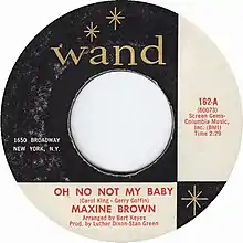 Released in September 1964, Brown's "Oh No Not My Baby" spent seven weeks in the Top 40 of the Billboard Hot 100 in December 1964 - January 1965 with a #24 peak.[3] The song was included on her second studio album Spotlight on Maxine Brown, released in 1965.
