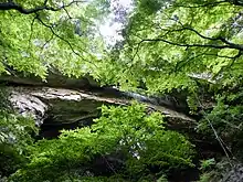 The temple precincts are a natural stone bridge made by erosion of tertiary sandstone with two lines. It is one of the Hirado Hakkei (平戸八景) eight landscapes within the former territory of Hirado Domain.