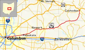 - ↑ Google (October 4, 2014). "Ohio State Route 16" (Map). Google Maps. Google. Retrieved October 4, 2014.
