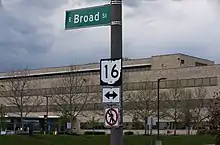 State Route 16 (SR 16) is an east–west highway running from Columbus to Coshocton. Its western terminus is at Civic Center Drive (formerly U.S. Route 33) in Downtown Columbus, and its eastern terminus is at US 36. For much of its run through Licking County, and its entire run through Franklin County, State Route 16 follows the path of Columbus' Broad Street. West of Drexel Avenue in Bexley, the route is cosigned with U.S. Route 40 until its endpoint just east of the Scioto River.