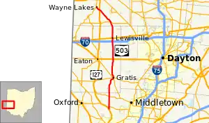 State Route 503 (SR 503) is a northsouth state highway in the southwestern quadrant of the U.S. state of Ohio. The southern terminus of SR 503 is at U.S. Route 127 (US 127) in Seven Mile. Its northern terminus is at a T-intersection with SR 121 on the eastern limits of the village of Wayne Lakes.