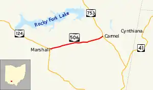 State Route 506 (SR 506) is an eastwest state route in southern Ohio. Existing entirely in eastern Highland County, SR 506 has its western terminus at SR 124 in the hamlet of Marshall. Its eastern terminus is at SR 753 in another unincorporated community, Carmel.