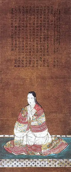 There are records of the 44th Gekkō Sōzu of Myōshin-ji temple praising her beauty and offering condolences for her young death. The description of the eulogy indicates that the portrait was created by the children of Oinu in the year of her death.[6]