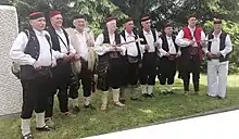 Many folklore groups have been performing to keep Ojkanje singing alive.[17] A prominent group, "KUD Promina" from Oklaj was formed by five locals from the area to preserve and perform their region's local Ojkanje singing,[18] and their success insured them an appearance in the official video on UNESCO's website. Other cultural groups (KUDs) noted by UNESCO that are active in preserving Ojkanje are "Sveta Magareta" from Velika Jelsa near Karlovac, "Gacka" from Ličko Lešće, "Radovin" from Radovin, "Sveti Nikola Tavelic" from Lišane Ostrovičke, and notable people from Srijane (near Trilj) and Kokorici (near Vrgorac). Croatian public television has aired numerous programs on ojkanje groups and reviving the custom among young people.[19][20] Examples of other groups include "KUD Petrova Gora - Kordun" Beograd,[21] and "KUD Kordun - Inđija",[22] formed by ethnic Serbs from the Kordun region of Croatia, but now perform throughout Serbia. There are numerous festivals and cultural events throughout the region that display Ojkanje singing to the public.[23][24] The village of Prigrevica in Sombor, Serbia, and other places in Vojvodina settled by Military Frontiersmen has the musical tradition of Ojkanje.
