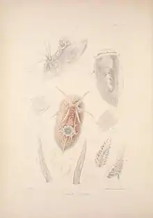 - ↑ Alder, J., & Hancock, A. (1845). A monograph of the British nudibranchiate Mollusca: with figures of all the species. Pt. 1, fam. 1, pls. 4, 5, 26; fam. 3, pls. 3, 21, 24, 26, 34-36. Ray Society, London.