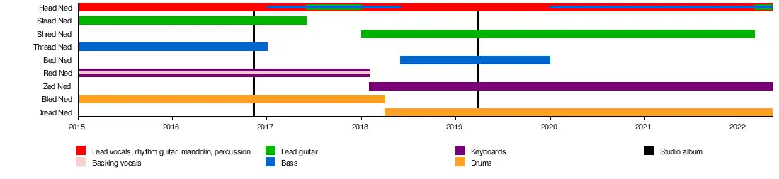 | Past members | Red Ned Stead Ned Shred Ned Thread Ned Bed Ned Bled Ned |