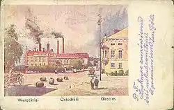 The brewery was established in 1845 by Johann Evangelist Götz (1815-1893), a German beer maker born in Wirtemberg together with Joseph Neumann, from Austria-Hungary, and local Polish noble, Julian Kodrębski.[1] The first batch of beer was brewed on February 23, 1846. During the "Rabacja", a Polish-inspired peasant uprising in Galicia in 1846, directed at Polish nobility and affluent merchants complicate to Austrian partitioners of Poland, Götz barely escaped with his life. He survived thanks to help from local friends and the fact that the workers of his brewery stood up in his defense, certifying that his business provided good pay and decent working conditions. In turn, Götz helped to save the life of Julian Kodrębski, who had partly funded his brewery, by hiding him in woods on the banks of the Uszwica river in Brzesko, and providing him with food which was delivered over the course of ten days by workers from the brewery.[2]