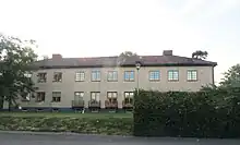 The opening of the Drammen Line in 1872 made the Fornebu area attractive for housing. Gradually areas were parceled for housing, although Oksenøen was too far from the train line to be attractive for much more than summer cottages.[1] There was a small road which led to the farms.[2] In the early 20th century Oksenøen was converted into a market garden. Designed by Palace Gardener Nickelsen and Architect Magnus Poulsson, the facility was completed in 1919. It consisted of eight to ten buildings and ten to twelve greenhouses. It was the largest market garden in the Nordic Countries in 1919, and by far the largest such facility in Norway to be built with a central plan.[3]