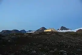 Okstindan is a mountain range which lies in the inner Helgeland district in Nordland county, Norway. It is located within the municipality of Hemnes. The mountain Oksskolten is part of the Okstindan range, and it is the highest mountain in North Norway. Other mountains in the range include Okstinden, Okshornet, Vesttinden, and Bessedørtinden. Between these mountains lies the large glacier Okstindbreen. The Swedish border lies just to the east of the mountains.[2]