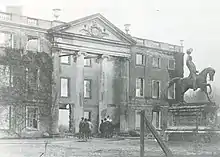 The cause had been a chimney fire in the dining room. A fire engine was summoned by bicycle and Ashford's horse drawn steam pumper responded, drawing water from the ornamental lake, but much of the house was devastated; the roof collapsed.[26] Many priceless objects including paintings, sculpture and carvings were lost, including a malachite vase which Queen Victoria once wished to purchase. Fortunately the picture gallery was saved by an iron door[27] and the family's archives survived.[28]