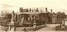 By 1878, Olantigh was particularly noted for its statuary.[25] Erle-Drax had an equestrian statue of himself erected in front of the house's grand portico[1] and stags, the Erle-Drax mascots, were placed prominently.[21] He purchased the Hubert Fountain[10]