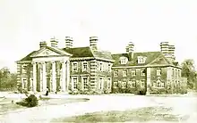 In 1910, Erle-Drax commissioned architects A. Barnett Brown and Ernest Barrow to design a new house incorporating the original stone portico. The footprint was moved, with the portico 70 feet (21 m) from its original position, and the smaller scale, red-brick mansion was finished in 1911.[10] The architects were best known for maintenance on masonic premises and this is an unusual example of a completed residence amongst their work.[30]