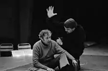 ![]() Olavi Ahonen (left) at rehearsals of The Robbers in 1970, directed by Kalle Holmberg. | |