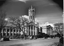The building has housed departments of Arts, Architecture, Law, Music and the Library as well as the University Hall, and limited student amenities in the rear wing.[1][4]