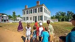The Old Chattahoochee County Courthouse was built in Cusseta, Georgia, in newly created Chattahoochee County in 1854. After it was no longer used and slated for demolition, it was moved to Westville, in Lumpkin, Georgia, an outside museum depicting life in west Georgia circa 1850. The Lumpkin location of Westville closed in July 2016, and in 2019, the museum was moved to Columbus, Georgia, near the Columbus Public Library.[2]