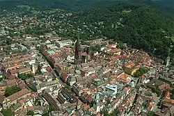 The Old City of Freiburg is part of the city and business centres of Freiburg im Breisgau and is the core of the original city. It is divided into the two districts 111 Altstadt-Mitte and 112 Altstadt-Ring. The Altstadt-Mitte district was the city's build-up area at the time of its foundation and therefore formed the old city. The district Altstadt-Ring is connected westwards to the railway line and south to the Dreisam.