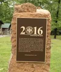 Bolton Smith, an investment banker from Memphis, Tennessee and the first president of the Chickasaw Council, purchased and donated the original 206.28-acre (0.8348 km2) Kia Kima site on April 11, 1916.[2] The property consisted of a bluff overlooking the South Fork Spring River in Sharp County, Arkansas, near Hardy. The original Kamp Kia Kima opened in 1916 and operated (excluding World War II years)[3] as a Boy Scout summer camp until 1963.[4] For the next 33 years the property was in a state of abandonment and ruin until 1996 when the Old Kia Kima Preservation Association was formed with the mission to restore the camp.