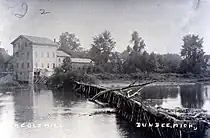 Referred to as the oldest and most notable landmark in Dundee, it is the Dundee Historic District's only inclusion (along with the surrounding park) on the opposite of the river from the rest of the downtown area. While the facility itself was not built until the 1849, the dam upon which it is located was first constructed in 1827 and rebuilt in 1846. It is the largest of several dams located along the River Raisin — the majority of which are in nearby Monroe.[3]