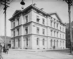 Congress appropriated funding for Knoxville's Customs House in 1856, and reappropriated the funding in 1869.[5] Construction of the original portion of the Customs House (at the corner of Clinch and Market), designed by U.S. government chief architect Alfred B. Mullett (1834–1890), began in 1871 and was completed in 1874.[5] The first floor was used as a post office, while the second and third floors were used for the federal court and office space for federal officials.[6]