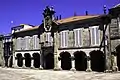 The Basilica of Saint Mary Major and the Convent of San Francis mark the strategic points from west to east of the old town on two hills. Between them, the medieval city with its labyrinth of streets (ruas) and medieval squares was shaped. The streets were structured around a main axis that corresponds to the present-day Sarmiento and Isabel II streets, and from there the rest of the streets were divided, forming a classic example of a medieval city with a fishbone-like plan, where the streets are structured from a single central axis onto which the secondary streets are grafted.[20] The Calle Real (Royal street) crosses part of the old town from north to south. Between the streets, the historic centre is dotted with squares of regular proportions, square or rectangular, with many noble houses with stone coats of arms, which air out the urban fabric and give it elegance.