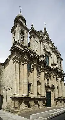 In the 16th century, the economic power of the Seamen's Guild led to the construction of the Basilica of Saint Mary Major. Throughout the 16th century, the network of streets, squares and buildings covered part of the empty spaces inside the walls of Pontevedra. In 1719, the English invasion caused great damage to the city.[14] During this century, urban renovations were carried out with new squares and streets and new religious buildings were built, such as the Church of Saint Bartholomew and the College of the Society of Jesus, as well as new urban palaces such as that of Mugartegui and the remodelling of that of the Counts of Maceda. Near the walled enclosure, the Church of the Pilgrim Virgin was built in 1792.