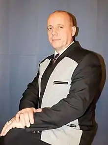 Oleg Grushecki (Belarusian: Алег Грушэцкі; born 8 May 1974 in Minsk) is a Belarusian writer, journalist, translator, public figure. The revivalist of scouting in Belarus, one of the founders of the «Belarusian Scout Association».[1][2] Author of literary and historical articles in both Belarusian and foreign scientific publications. Winner of a number of creative awards.[3]