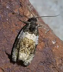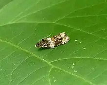 Olethreutes fasciatana, banded olethreutes, size: 8.2 mm