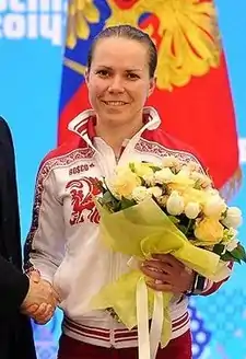 Olga Borisovna Graf (Russian: Ольга Борисовна Граф; born 15 July 1983) is a Russian speed skater.[2] Graf competed at the 2014 Winter Olympics, where she won bronze medals both in the 3000 metres event and in the team pursuit.[3]