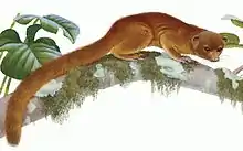 The olinguito /lɪŋˈɡt/[3] (Bassaricyon neblina) is a mammal of the raccoon family Procyonidae that lives in montane forests in the Andes of western Colombia and Ecuador. It was classified as belonging to a new species in 2013. The specific name neblina is Spanish for fog or mist, referring to the cloud forest habitat of the olinguito.[2]