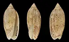 | Shell of Oliva flammulata dolicha (holotype at NMNH, Washington) | |