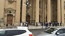 Oliver Friggieri's coffin was at the Floriana Parish Church, before the state funeral mass in Mdina