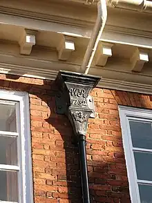 The building is of two storeys and an attic, with the front having eight windows and two doors. The front is of orange brick, with a stone plinth and a timber cornice. One drainhead is dated 1732. Internally, much 18th-century work survives, including the flooring in the entrance and staircase halls, the oak main staircase, the ceiling above the staircase, and the panelling of two ground floor rooms. The half-landing, in the middle of the staircase, has a wooden floor which the RCHME describe as "exceptional". One rear ground floor room has an early-17th century ceiling, and a fireplace surround which was moved from 27 Trinity Lane in 1969.[1][2]