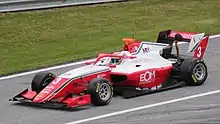 Caldwell would bounce back after the summer break at the round in Imola, where, despite a crash in Race 3, he would score two second places in the opening two races of the weekend and win Race 4, which was held as a re-run of the cancelled third race at Vallelunga.[30] As this had been the weekend during which Formula 2 driver Anthoine Hubert had been killed at Spa-Francorchamps, Caldwell decided to dedicate his victory to the late Frenchman.[31] In Barcelona, Caldwell was fighting for a podium position in Race 1 until being forced into the gravel by Fittipaldi, which left the Brit down in seventh place.[32] Two further points finishes completed the weekend, although at the next round in Mugello Caldwell experienced his worst weekend of the season, scoring a mere three points and getting his first and only non-points finish of the season.[33] He ended his campaign with three top-eight finishes at Monza, as Caldwell finished fifth in the championship, a long way off teammates Vesti and Fittipaldi.[34]