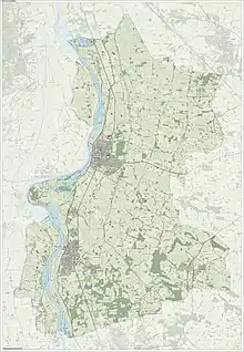 Apart from river IJssel, several more streams flow through the municipality's territory. They are called wetering ("drainage waterway") and are amalgamations of natural streams gradually channelised from the 18th century onwards and specifically dug canals[5] . From west to east, these are Zandwetering, Soestwetering, Groote Vloedgraven, Oude Wetering and Nieuwe Wetering. All these streams flow in a south–north direction and come together at one point or other to eventually form the Zwarte Water river near the city of Zwolle. On the left side of river IJssel, near the exclave of Welsum, there are several more wetering streams, all but one of them on the Gelderland side of the border; the exception being the easternmost of these, the Terwoldsche Wetering, which forms the border between Olst-Wijhe and Voorst.