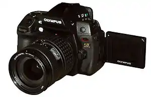The Olympus E-3 was until 2010 Olympus Corporation's flagship camera, positioned as a professional DSLR camera. It is the successor to the Olympus E-1, which was launched in November 2003. The E-3, originally codenamed Olympus E-P1, was announced on 17 October 2007.[1][2] The E-3, like the other cameras in the Olympus E-series, conforms to the Four Thirds system. It was succeeded in 2010 by the Olympus E-5 professional DSLR flagship camera.