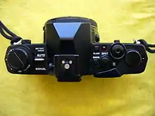 The OM-4 used a horizontal cloth focal plane shutter with a manual speed range of one second - 1/2000 second (up to 240 seconds was possible in automatic mode), plus bulb and flash X-sync of 1/60 second. Unlike most SLRs of the era, the OM-4 used a familiar OM-series shutter-speed ring, concentric with the lens mount, instead of a top-mounted shutter speed dial.