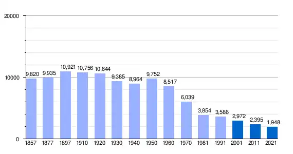 The region had almost 11,000 inhabitants at the beginning of the 20th century. From then on, the population began to emigrate, mostly to Argentina, Brazil and Venezuela at the beginning, and to Europe and other regions of Spain and the province of León as the century progressed. The 1986 census already counted only 4,000 inhabitants.[15] But by 2011, the population dropped to 2400.[28] Emigration has led not only to the depopulation of the region, but also to the aging of the population, since mainly young people emigrate, which hinders the prospects for recovery.[15]
