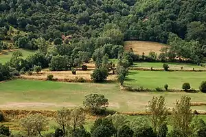 The county shares its name with the Omaña River, which constitutes its main axis. Around the valley of the Omaña are arranged the different valleys which compose the county, following the ancient network of fractures hercynics in northwest-southeast direction: El Valle Gordo, the Valle Chico, La Lomba and Valdesamario—occupied by the rivers Vallegordo, Sabugo River, Negro River and Valdesamario or Ponjos respectively— as well as the narrow valleys of the northern slope of the Omaña, all with a physical character of their own.[18] A short distance from the mouth of the Valdesamario, the Omaña joins the Luna River in the municipality of las Omañas; Here the river valley widens considerably and the terrain takes on a more pronounced plain character, now being considered part of the Ribera del Órbigo.[19]