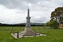 The settlement has a war memorial obelisk, featuring the names of ten local men who died in World War I and five local men who died in World War II.[4]