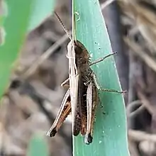 Omocestus panteli, or Pantel's grasshopper, is a species of slant-faced grasshopper in the family Acrididae. It is found on the Iberian Peninsula.[2][1]