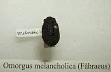 - ↑ "Catalogue of Life : Omorgus melancholicus (Fahraeus, 1857)". www.catalogueoflife.org. Retrieved 2018-03-15.