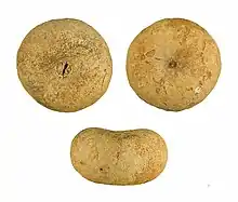 Omphalocarpum elatum Miers ('omphalocarpum' = navel fruit, 'elatum' = lofty) is a tall, tropical African tree belonging to the family Sapotaceae, remarkable for the large fruits growing directly from the trunk, and in many ways resembling the Lecythidaceae genus Napoleonaea.[1] It is found in Equatorial Guinea, Sierra Leone, Ghana, the Central African Republic, Gabon, the Democratic Republic of the Congo, Nigeria, Liberia, Cameroon, Côte d’Ivoire and Angola in the south.[2] The fruits are favoured by elephants, the only animals able to break through the hard shell. They do this by skewering the fruit with a tusk while using their trunk to brace it against the ground. Having passed through the elephant's digestive tract, seeds germinate more readily. Although not yet endangered, the tree's life cycle is tied to that of forest elephants, and may become threatened in regions where elephant populations are under pressure.[3]
