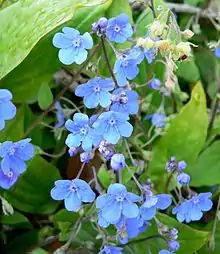 Omphalodes cappadocica, the Cappadocian navelwort, is a species of flowering plant in the family Boraginaceae, native to woodland habitats in Turkey. It is an evergreen perennial growing to 25 cm (10 in) tall by 40 cm (16 in) wide, with slightly hairy, oval pointed leaves and loose terminal racemes of bright blue flowers with white eyes, similar to forget-me-nots, appearing in spring.[1]
