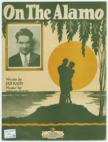 "On the Alamo" is a 1922 composition by Isham Jones, with lyrics by Gus Kahn (under the nom-de-guerre of Gilbert Keyes) and Joe Lyons. Jones and his Orchestra recorded it at Brunswick Studios in New York City in February without a vocalist, as was his custom at the time, and it was released as the b-side of "By the Sapphire Sea" on Brunswick 2245 in April.