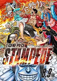 One Piece: Stampede is a 2019 anime fantasy action-adventure film directed by Takashi Otsuka and produced by Toei Animation. It is the fourteenth feature film of the One Piece film series, based on the manga of the same name written and illustrated by Eiichiro Oda, and commemorates the anime's 20th anniversary.[7] Oda was involved with the film as creative supervisor.[8]