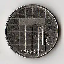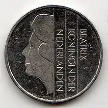 The Dutch 1 guilder coin featuring Queen Beatrix on its obverse was a unit of currency of the Dutch guilder minted between 1982 and 2001.