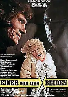 One or the Other of Us (German: Einer von uns beiden) is a 1974 West German film directed by Wolfgang Petersen. It was Petersen's first theatrical feature film, and was based on the novel of the same name by Horst Bosetzky, published anonymously under his pseudonym -ky. The film is a psychological thriller and focuses on the intense conflict between a university professor and a blackmailer. The film features Klaus Schwarzkopf and Jürgen Prochnow as the two main characters and won two Bundesfilmpreise.