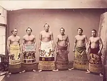 ![]() Onigatani (far right) as a maegashira | |